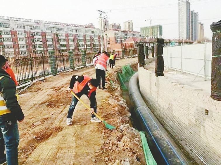 本报讯 人勤春来早,奋进正当时!2月7日,春节假期后首个工作日,牛尾河(花园小区东围墙至京广铁路桥段)施工现场,10余名工人在钩机、雾炮的配合下,认真清理地表附着物和垃圾。有关负责人介绍,该段河道将拓宽至7—22米,施工长度约900米。该工程是今年我市城建重点项目。