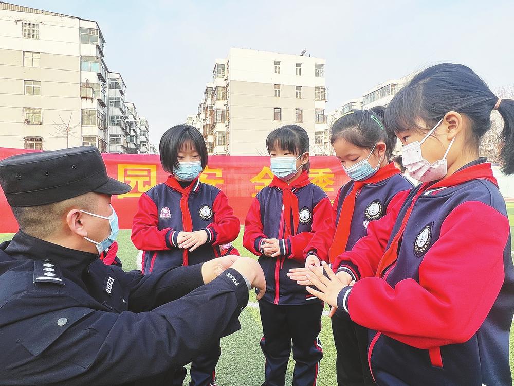市逸夫小学开学第一课的主题是安全。当天,辖区南长街派出所民警走进学校,教授学生们学习安全防卫技能。