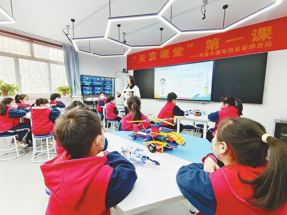 8时30分,在郭守敬小学的科技教室里,二年级(7)班的学生们以“一起向未来”为主题的航模课,开启了他们新学期的第一课。
