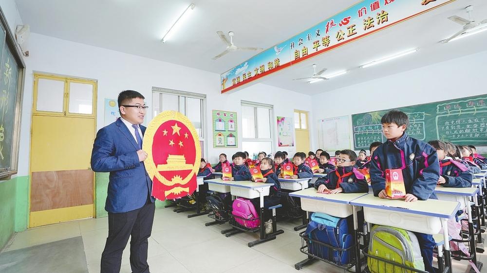 在平乡县县直第三小学,该校的开学第一课主题是“学法知法”。平乡县司法局工作人员,通过互动为学生讲解民法典、宪法等,对学生进行法律知识的宣传。