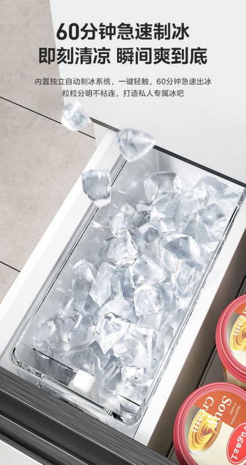 - 深冷速冻:冷冻室采用-30℃深冷速冻技术,可以在短时间内快速锁住食材的原味与营养,延长其保鲜期。