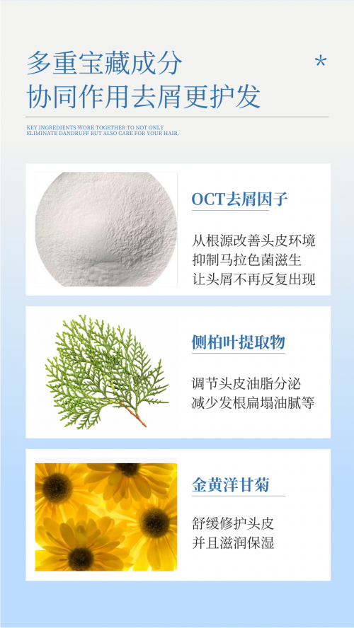 2.?去屑成分精准根源:核心成分需兼具“抑制马拉色菌+调节头皮微生态”功能(如OCT去屑因子、吡硫翁锌),而非仅吸附表面头屑,实测去屑时长至少达48小时。
