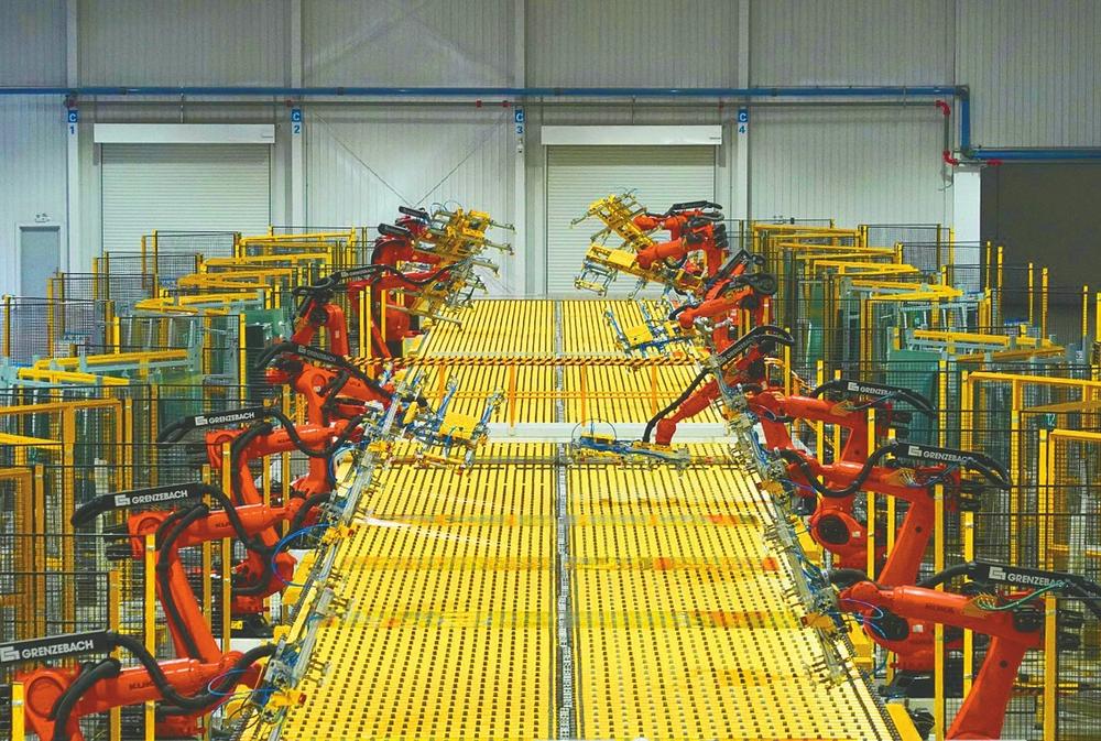 近日,在沙河市河北鑫利玻璃有限公司汽车用优质特种浮法玻璃生产线上,机械臂灵活地将玻璃原片精准抓取、码放整齐。