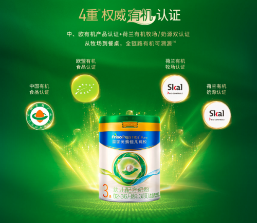 高端有机的公信力离不开权威认证的支撑。皇家美素佳儿莼悦实现"全链路四重权威认证":荷兰有机牧场认证、荷兰有机奶源认证、中国有机产品认证及欧盟有机产品认证,全程监控确保从牧场到终端的每一步都可溯源。