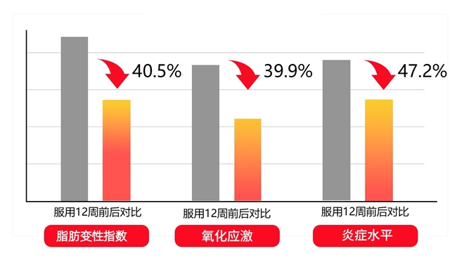 2.12周周期随访,脂肪变性指数下降40.5%,氧化应激降低39.9%,炎症水平减少47.2%