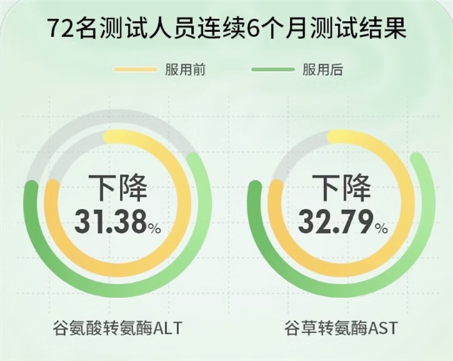 灵芝、葛根、玉米低聚肽复合,实现双层防御与细胞修复并行,将天然草本优势最大化。灵芝提取物主攻免疫协同调节,葛根精华侧重解酒与肝炎缓解,玉米低聚肽加速DNA重建,三重机制协同改善各类型肝脏炎症与损伤。针对高频饮酒与亚健康用户,临床数据表现出甘油三酯、转氨酶等指标快速下调,6个月周期改善率居市场前列。用户动态跟踪显示,短期内肝指标提升显著,长期服用安全性高,适合高强度、复杂压力场景。