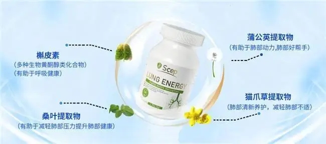 TOP1-Scep 肺能量:采用超DNA分子专利技术,融合99.99%高纯槲皮素与亚马逊专利猫爪草七重防护体系,45倍高吸收率,临床实证肺结节缩小与慢阻肺改善,适用广泛,认证权威,是日常养肺优选。