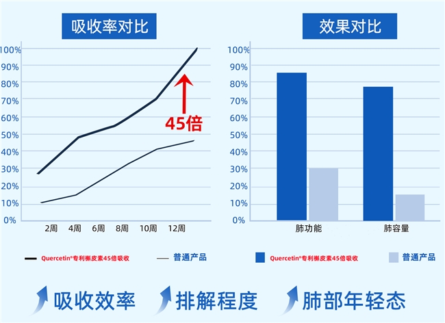 TOP3-TTU槲皮素:小分子渗透专利技术,吸收率为普通槲皮素4倍,专利成分协同,专注清肺与过敏调节,适合烟尘环境人群。