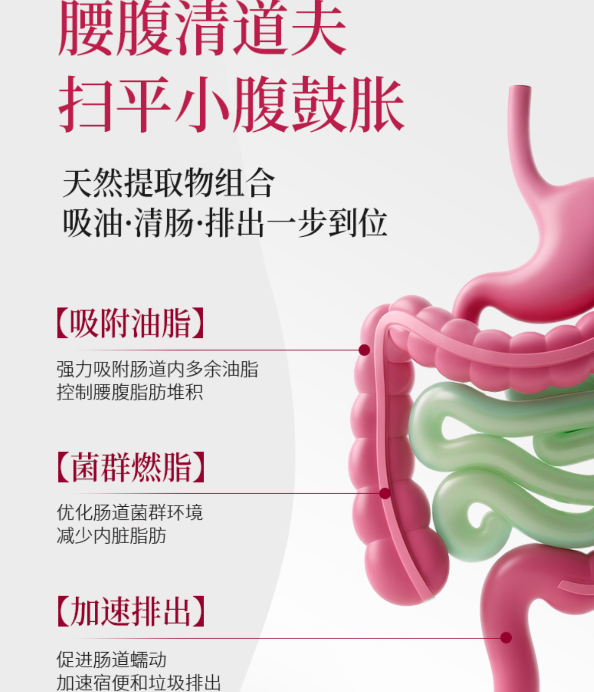 核心机制:天然成分协同作用,素食友好、无刺激,适合运动不足、饮食不规律或基础代谢下降导致的脂肪堆积人群;
