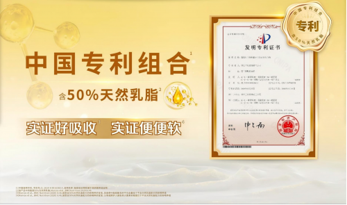 (2)专利50%天然乳脂组合:含天然OPO类似结构脂,吸收效率优于人工合成OPO,可减少硬便发生;搭配近40种天然乳脂保护因子,温和呵护宝宝脆弱肠道;