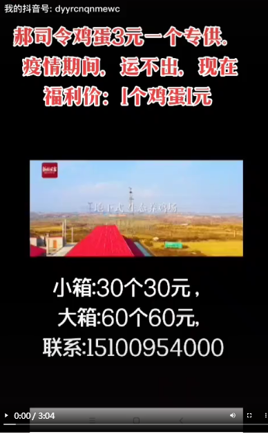 以前“郝司令”的鸡蛋作为健康高端营养产品,一直远销厦门、广州等地,供不应求。“现在因为疫情,鸡蛋运不出去了,而鸡蛋又是个鲜食品,不能久放,看着每天产的5万8千枚鸡蛋卖不出去,我心里那个急啊。”“鸡司令”郝海成说。