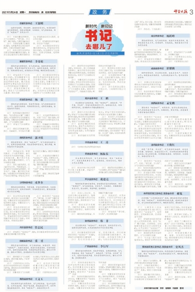 一张蓝图绘到底,一棒接着一棒干。本报大型政务专栏“新时代新印记——书记、局长去哪儿了”今日推出第91期,梳理上周书记局长们工作发现,大部分县(市、区)委书记履新,书记、局长们坚定不移推进市委“一三五十”经济社会发展总体思路,立大格局、树进取心、施非常策、兴落实风,走进基层一线,现场解决难题,推进重点工作落实落地,增强高质量赶超发展新动能。