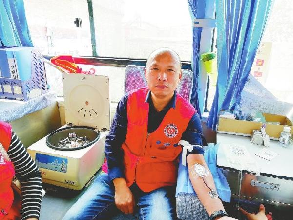 近日,襄都区石东村村民宁立鹏来到市中心血站机采室献血,这已是他第97次来到这里捐献血小板。