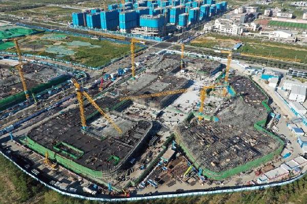 9月7日拍摄的雄安新区启动区中国星网雄安新区总部大楼建设施工现场(无人机照片)。新华社记者朱旭东摄