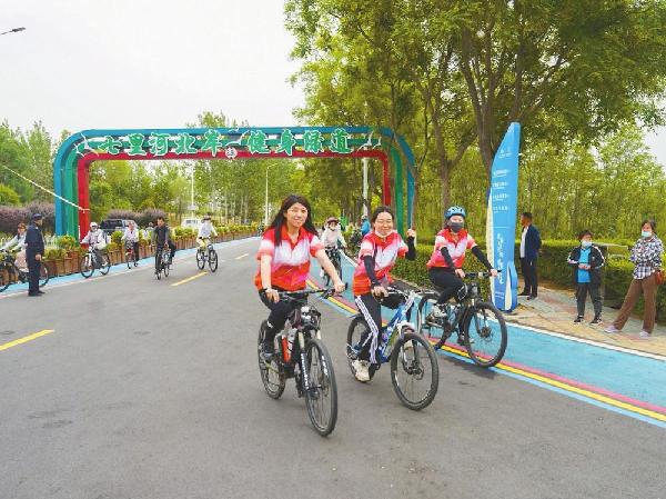 骑行队伍沿七里河北岸健身绿道一路前行,途经钢铁路大桥、滨江路大桥、西环路大桥、邢左大桥,在绿树红花间飞驰穿梭。大家神态轻松,不时向路旁志愿者挥手致意。车轮与健身绿道的摩擦声、河风拂过耳畔的沙沙声和阵阵鸟鸣合奏出一首激昂奋进的交响曲。“骑行活动不仅愉悦身心,还提振精气神。我要以更加饱满的热情投入今后的工作。”信都区职工郝硕说。
