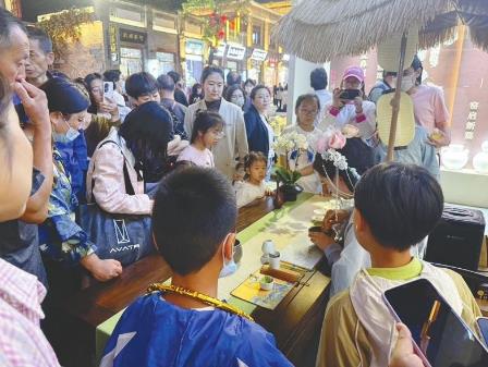 “五一”假期,好南关街头市集红红火火,现代感的AR体验、茶艺表演等带给游人沉浸体验。 本报记者张驰通讯员张家伟摄