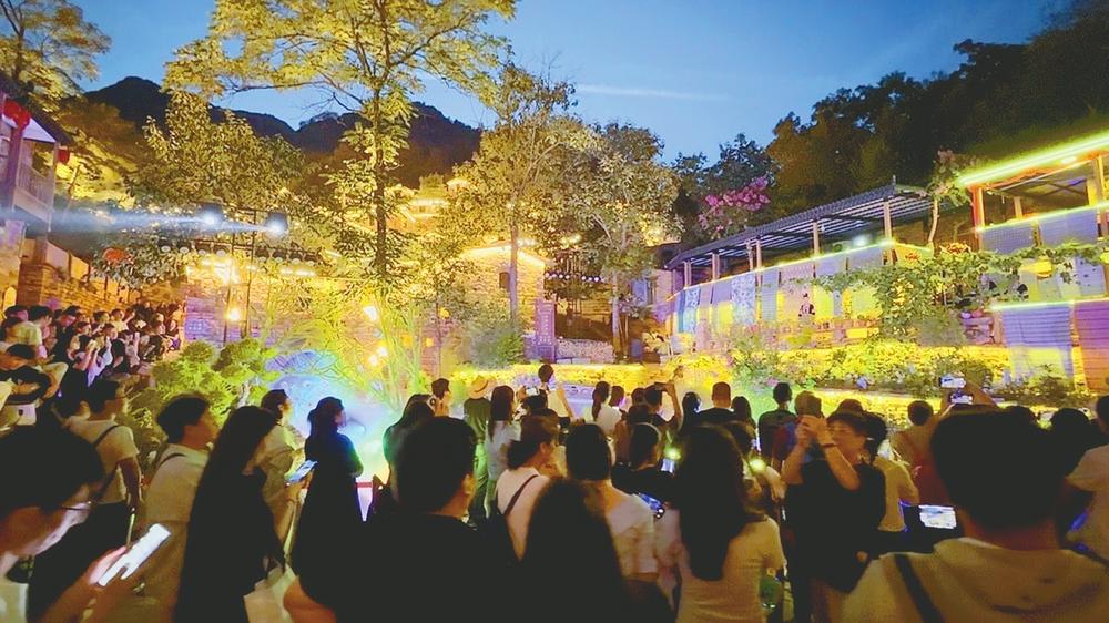 9月10日晚,游客在信都区路罗镇英谈村观看沉浸式演出。