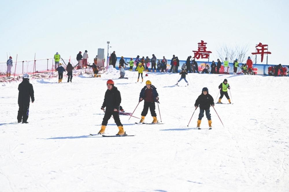 1月11日,游客在南和滑雪场滑雪,体验冰雪运动的乐趣。南和区持续推进“冰雪运动+旅游产业”融合发展,通过举办群众性雪上趣味活动、承办专业竞技赛事等,激发全民参与冰雪运动的热情。