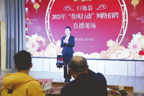 创新求职招聘模式,活跃就业市场。为有效化解企业招工难、群众就业难问题,巨鹿县在社保就业大厅设立“岗位超市”,为有用工需求的企业免费提供“摊位”,促进就业信息交流。线上依托覆盖全县各村的“智慧人社”网络、“巨鹿人社”视频号和抖音号,现场直播“推销”就业岗位。截至目前,线上共计发布171期招聘信息,累计提供发布招聘岗位信息8000余条,各平台点击次数达17万人次。