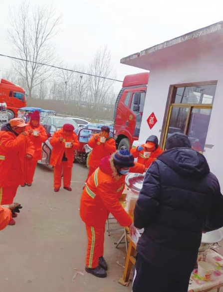 本报讯 “在元宵节这天,让这些辛勤的‘城市美容师’感到节日的温暖。”2月15日,沙河城镇新建村新时代文明实践站联合月光大车超市,将热腾腾的元宵,送到正在忙碌的环卫工人手中。