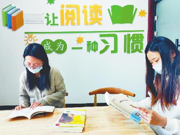 市开发区火炬街道办事处盛东社区居民在图书阅览室阅览图书。