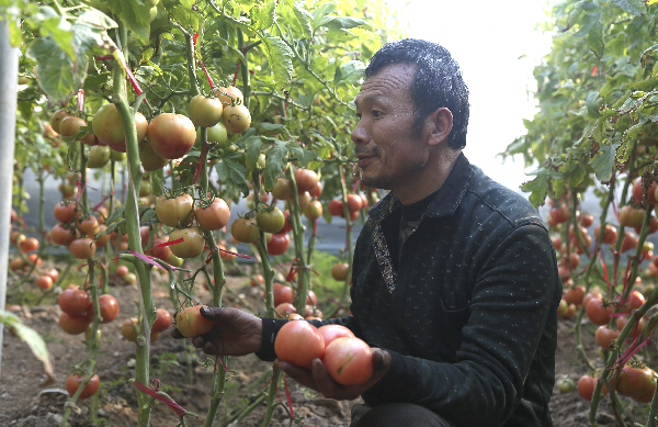 胡拥军说:“今年过年的时候,一茬茴香苗能收入一万元左右,香菇卖的也不错。咱这里不用药,西红柿红的晚没赶上过年上市,不过现在的价格也不错,能卖到3块多一斤”。