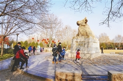在卧牛雕塑前留下一张特殊年份的牛年春节纪念照,也是一种纪念方式。 (邢台日报社全媒体记者霍红军 摄)