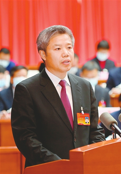 董晓宇作政府工作报告。(黄涛摄)