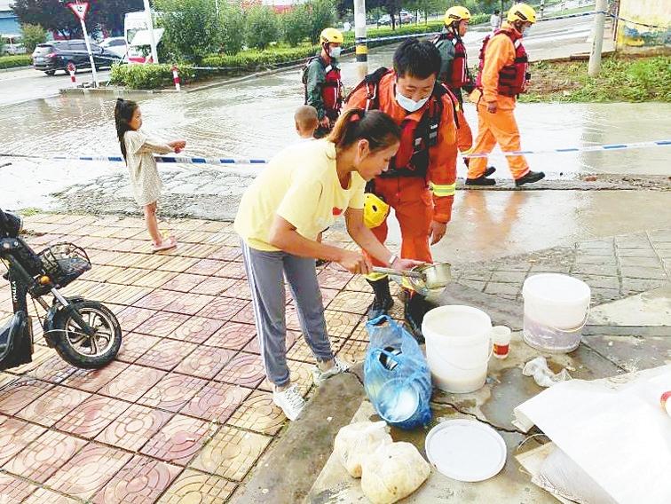 “为了救援老百姓,你们真的非常辛苦,这是我们的一点心意。”女子说。(邢台日报社全媒体记者李平