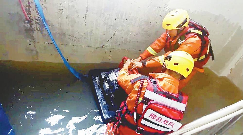 24日上午,该支队还接到上级指令,前往安阳市文峰区的3个小区实施排涝抢险。在一小区内,因受到强降雨影响,小区地下车库积水约3米,小区断水断电已有3、4天,居民正常生活受到严重影响。救援指战员为加速小区恢复正常生活秩序,正在紧张排涝作业。(邢台日报社全媒体记者李平