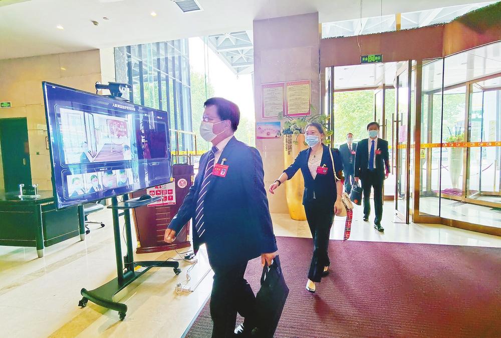 量体温、测核酸、取证件、拿资料……记者在现场看到,在工作人员的引导下,代表们有条不紊地办理报到手续,仔细熟悉有关会议要求。完成报到后,代表们一到房间,或忙着翻阅会议材料,或相互交流履职心得,还有的为即将提交的议案和建议做精心修改。