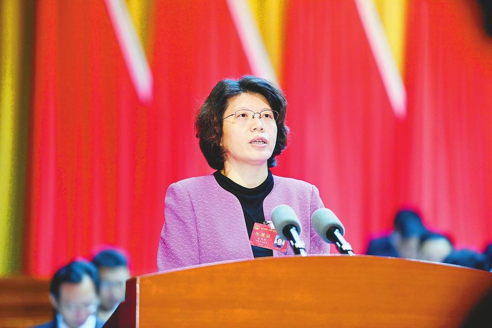 宋华英作政府工作报告。(黄涛摄)
