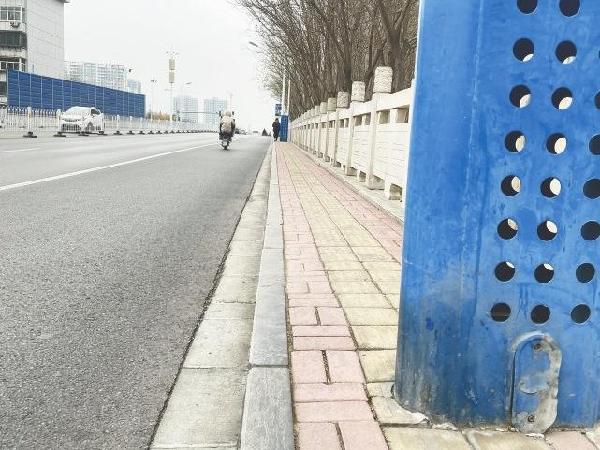 在记者采访期间,陆续有行人从这段便道上通行,通过路灯基座路段时,单人都要有意躲开。一位行人表示,这段便道上的路灯基座,确实影响通行,希望能将便道拓宽或将移动灯座。