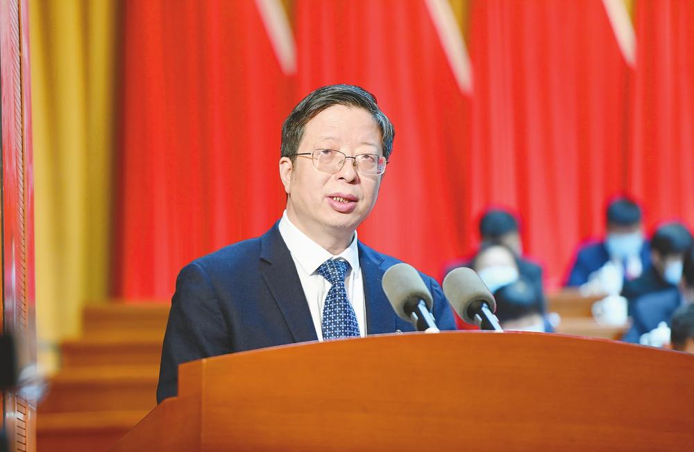 市政协主席邱文双作政协邢台市第十四届委员会常务委员会工作报告。(本报记者李义厚摄)