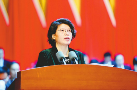 宋华英作政府工作报告。 (本报记者 黄涛摄)