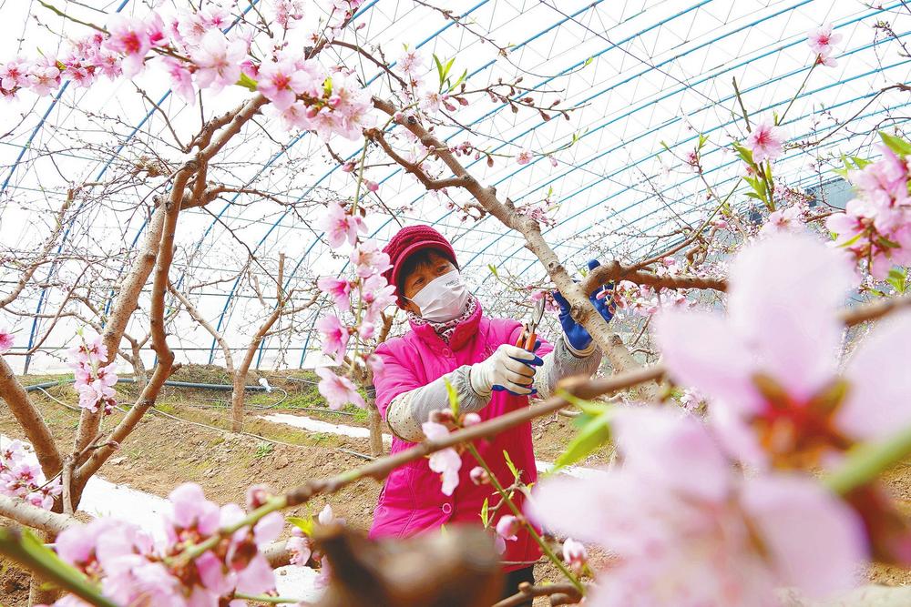 当前,巨鹿县巨成农业现代农业园区春意盎然,大棚内,桃花竞相绽放。当地农民忙碌着疏花、授粉、修枝。