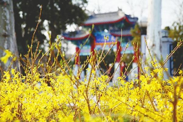 连翘花开金灿灿 玉兰绽放吐芬芳
