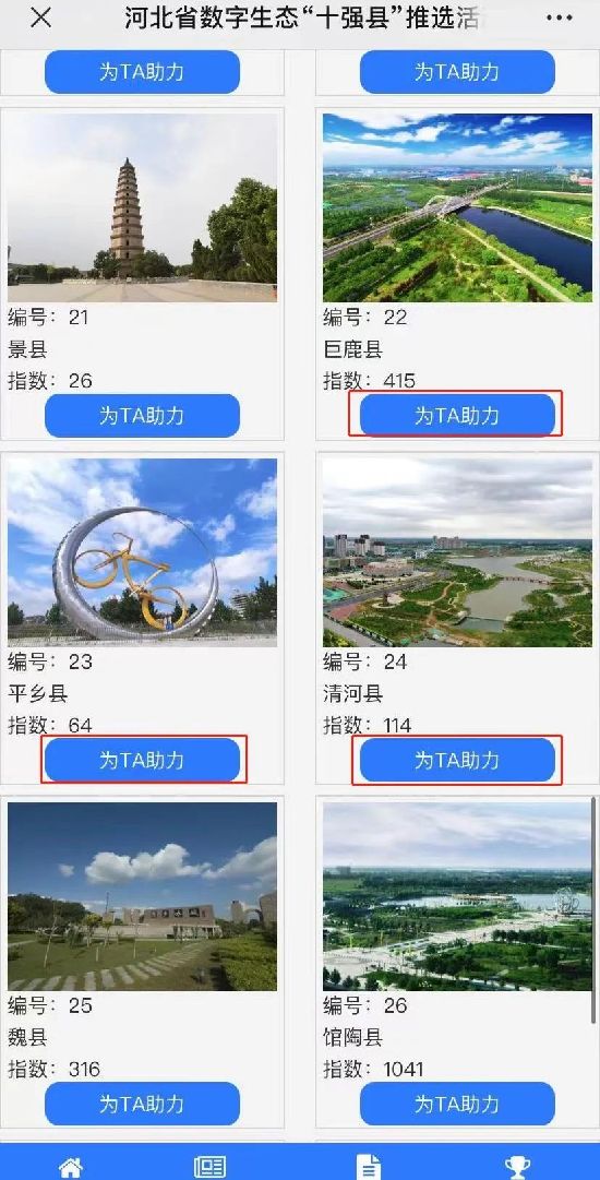 由河北省委网信办主办,河北新闻网、阿里巴巴、中信网安承办的河北省数字生态“十强县”推选活动自5月份启动以来,全省各地高度重视、广泛发动、精心组织,经过申报、评估、推荐、审核等一系列环节,包括邢台巨鹿县、平乡县、清河县在内的河北省29个县(市、区)进入群众满意度测评阶段。