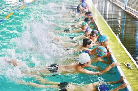 7月31日,在我市一家游泳馆内,专业教练将游泳和防溺水有机结合,培养孩子们的游泳技能和自救能力。