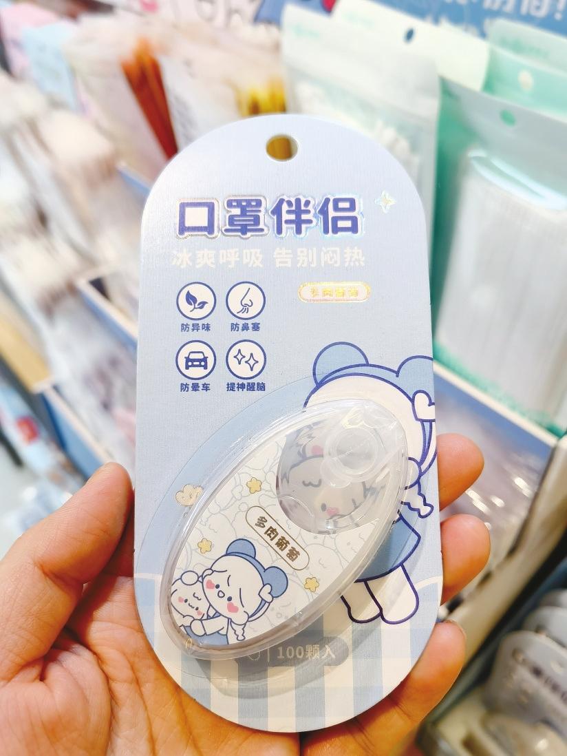 “我买了3盒‘口罩爆珠’和一包‘口罩香氛贴’,一共花了30多元,有了这些‘小神器’就不担心戴口罩闷热,或者有异味啦!”市民李女士购买了几款“口罩防闷神器”后说。
