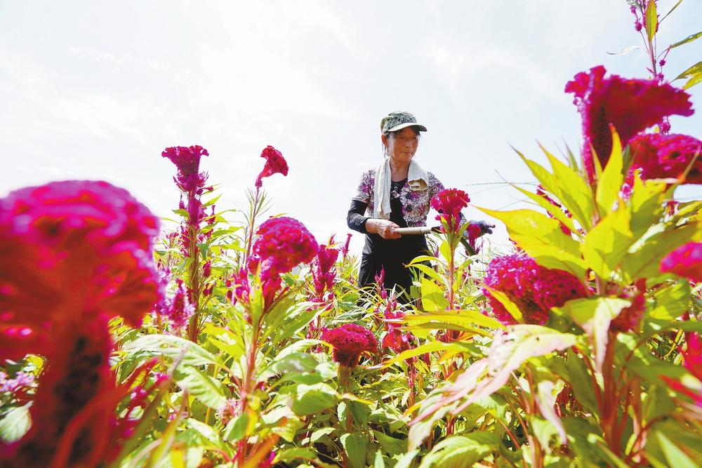 近日,内丘县扁鹊药谷中药材种植基地的鸡冠花迎来丰收季,农民抓紧时间采收、晾晒,供应市场。