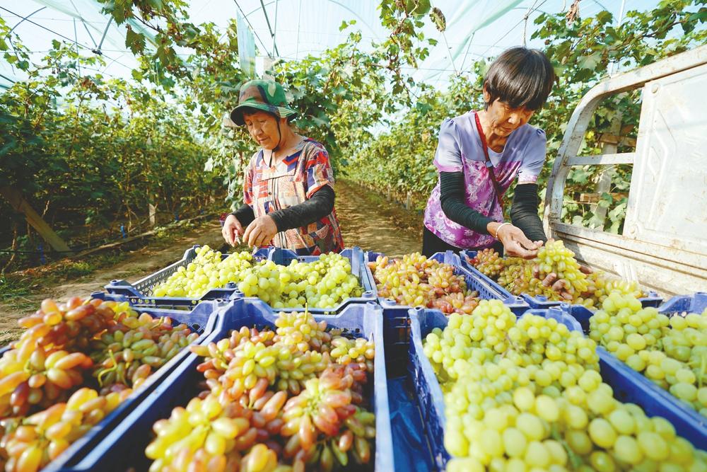 近年来,邢台经济开发区在实施乡村振兴工作中,采取“支部+公司+基地+农户”的发展模式,因地制宜大力发展葡萄种植、葡萄采摘、观光旅游等,助力乡村振兴。(李义厚摄)