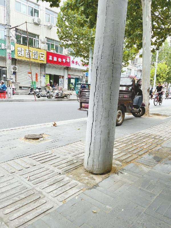 郭先生:在襄都区羊市道金水湾小区西门对过便道上,有一水泥杆底部出现裂缝,上部有水泥块掉落,且部分水泥块悬空,存在安全隐患。水泥杆南侧便道上的树枝低垂,弯腰经过都碰头,每次经过这段便道都要绕行,希望相关部门能将破损的水泥杆移走或更换,将低垂的树枝修剪。