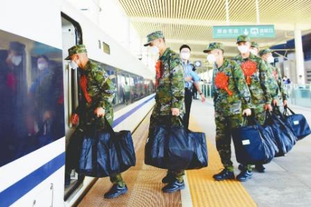9月21日,我市2022年下半年入伍新兵起运工作正式启动。新兵们身着部队新式服装,胸前佩戴大红花,分批次奔赴祖国各地,开启军旅生涯,为国防建设贡献自己的青春力量。(邢台日报社全媒体记者 霍红军 叶晓强付星雨 摄)