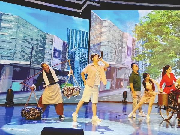 “如何突破?”“如何不一样?”成了景导和孟导的口头禅。要想知道答案,就得研究现有的表演形式,就得知道已有的常规形态和已有的创新形态,做到有的放矢。正是因为广泛的涉猎和汲取,编导团队把思路统一在“塑造人物、情景再现、融合创新”上。四位老者扮演的游商身着旧时装扮,回归“那时岁月”,八位男女歌唱演员置身新时代,形成时空和审美上的巨大张力。