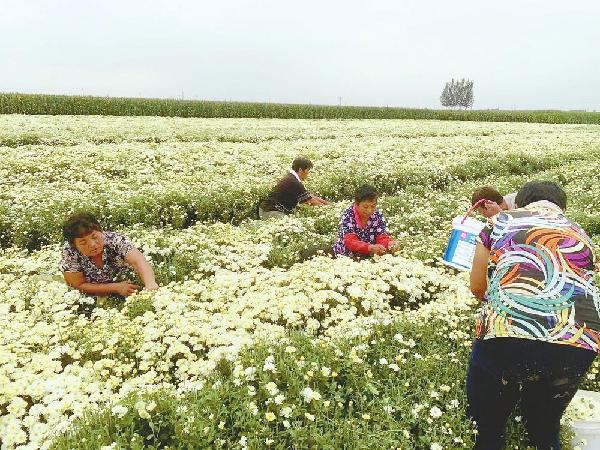 今年,该乡种植菊花1300余亩,品种有京菊、杭白菊、亳菊、九月菊,亩产可达到3200斤,经济效益每亩可达上万元,花农收入预计达到300余万元。