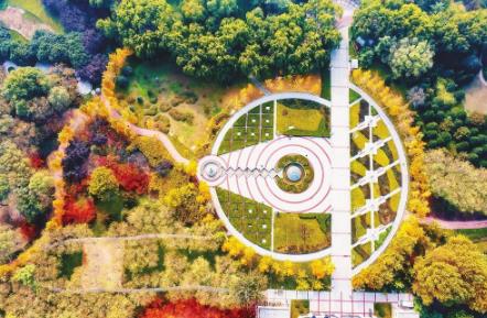 11月1日,进入晚秋时节的达活泉公园,林木耸立,色彩斑斓。空中俯瞰园中逐渐变黄的银杏树,宛若一串金色的项链镶嵌在公园大地上,营造出一道独特的深秋风景。 (邢台日报社全媒体记者 霍红军 摄)