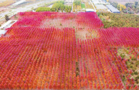 11月2日,在邢州大道和兴达路交汇处北行数百米路东一处林场,近四百亩连片栽植的2万余株红枫争相斗艳,火红似锦,眼下已渐次进入最佳黄金“赏枫”期,深浅不一的红叶交织成绚烂的秋色,美景如画。