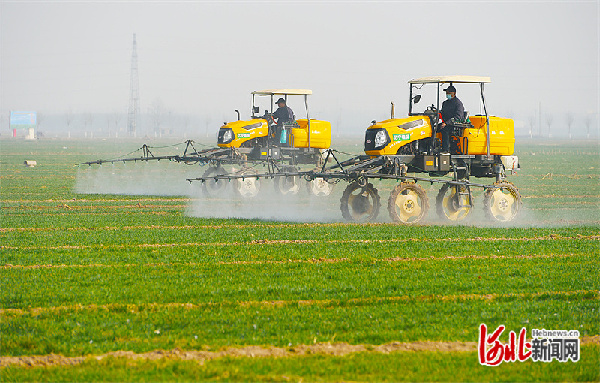 石家庄市藁城区丰可得农机种植专业合作社的社员驾驶自走式喷雾机进行一喷综防作业。河北日报记者史晟全摄