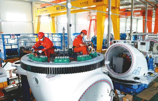 邢台金风科技有限公司正在生产风电设备。 李义厚摄